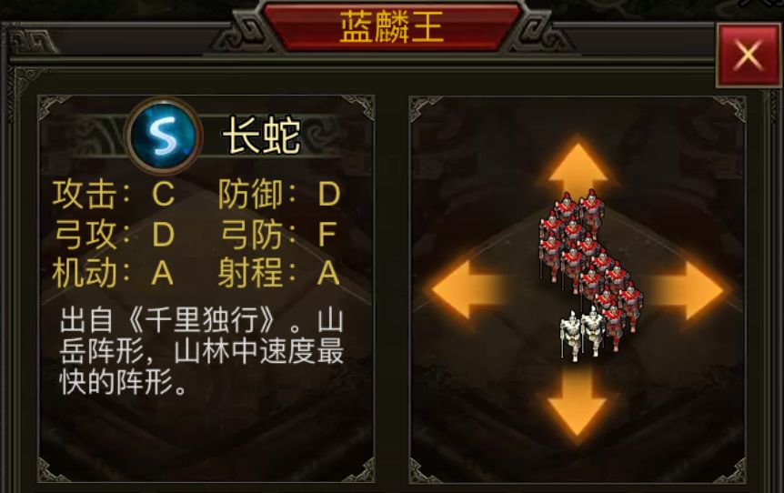 阵形介绍:山地阵可对敌人发起多次攻击(受统帅影响)
