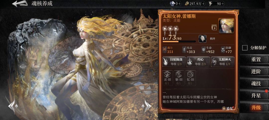 养成这块缺口好大,一键破产了。想想还有进阶材料,人都麻了。好在太阳女神颜值🌞赛高。只能等下周买礼包再拉一拉了。
