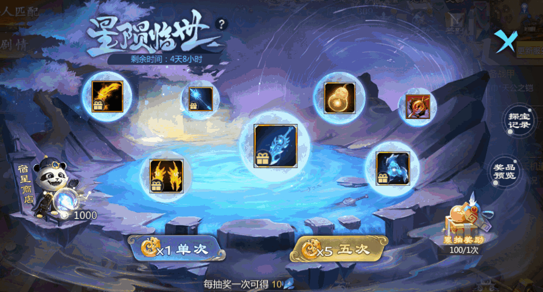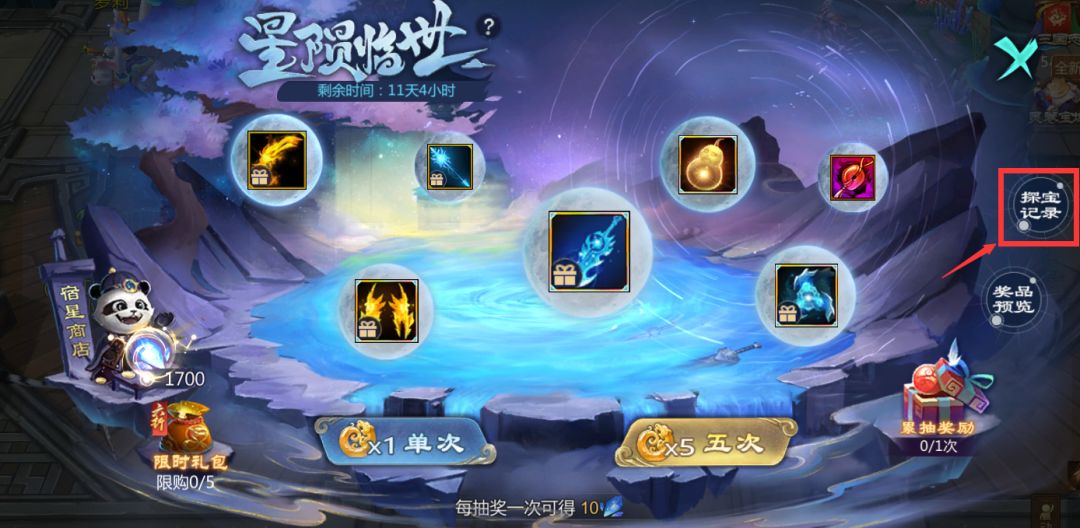 仙术师每次探宝都会累计1点抽奖次数,达到对应次数后可领取累抽奖励。