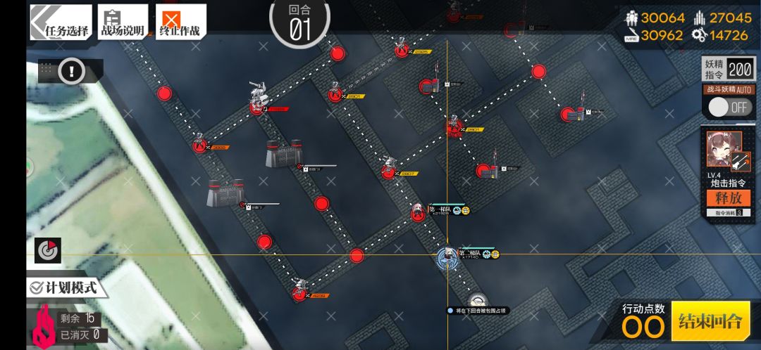 第三回合,2队左上一格,1队左下一格,部署狗粮队(放哪都行)