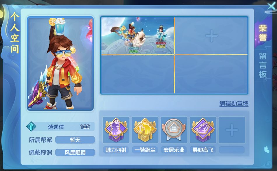 等级≥30级的少侠可编辑自己的个人空间