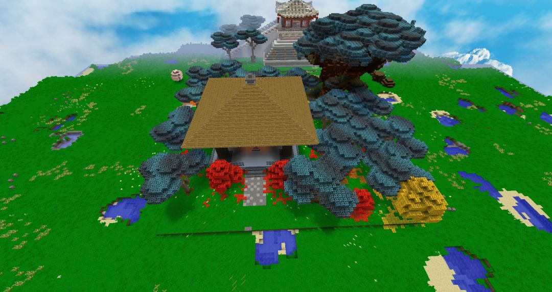 一开始我是用了竹子的,做出来的效果可以说非常的差劲,于是就改用一些树来代替竹子了。手撸了棵大树,外加一些小树,组成了这个玲珑棋局~