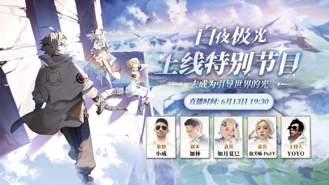 本次上线特别节目特邀嘉宾如月夏巳、泡芙喵,将与《白夜极光》研发团队一道踏上阿斯特拉大陆,领略全新国风内容,更有重磅联动企划首曝,敬请期待!