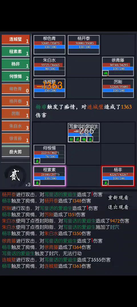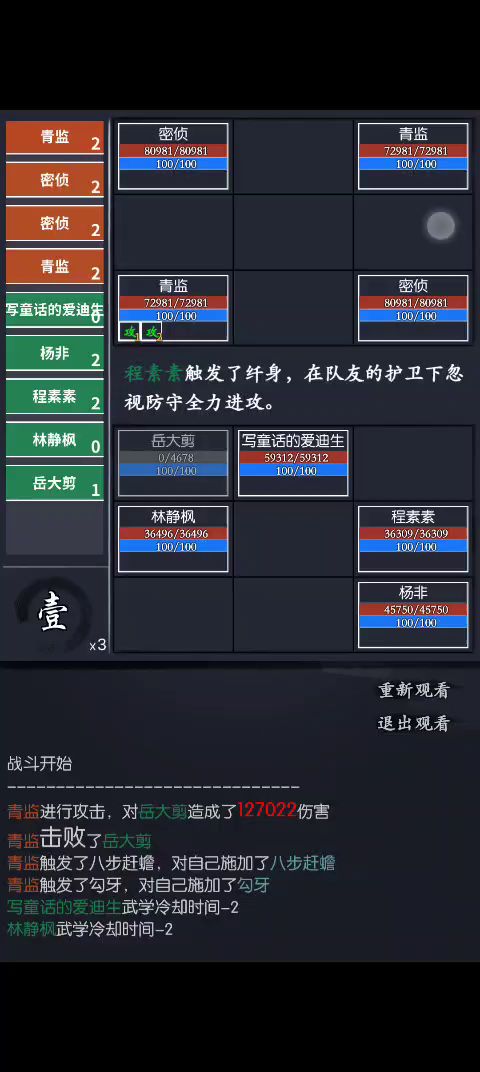 (这里写一下我选书香的原因,第一回合送岳后林第一回合辟邪,主角2-4回合林出手前被打出书香-cd被动,林第四回合就能再次辟邪剑法,这样就能叠2层2-2提供的爆伤。)