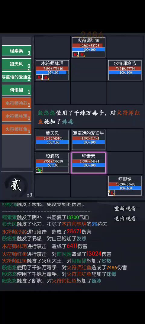 (ps:如果不想刷太多首抽 佛系一点就宗师林或杨 遇林杨选另一个, 素仪其中一个就行 其他后面慢慢抽..或者再佛系点 有林或杨就行 遇林杨选另个,这样有个缺点 抽奶妈太看脸,万一她俩一直不来其中一个就会很难受.....有两个奶妈1技学高,穿爆免武免装 侠客行能舒服不少,仪的回蓝回血 素素1技能解debuff 加满固定三个.还有每关一次的低血量回血.唯一难受的是不能给自己回,所以素素血量得保护好.)