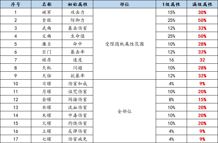 至臻属性一览: