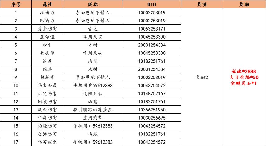 前3位单个灵印熔炼出2条至臻属性并按照要求参与活动的玩家奖励妖魄*3888、大日金焰*120、参水猿·定制*1