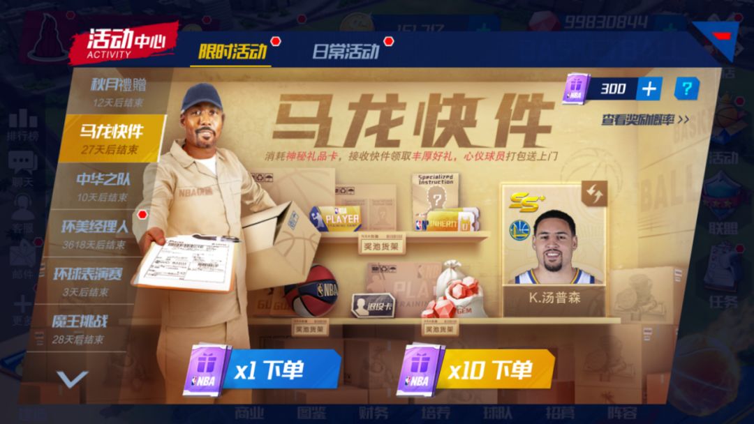 点击“查看奖励与概率”可查看签收包裹中可能包含的礼物。选择您心仪的球员,签收快递时还将有几率直接签约该球员哦~