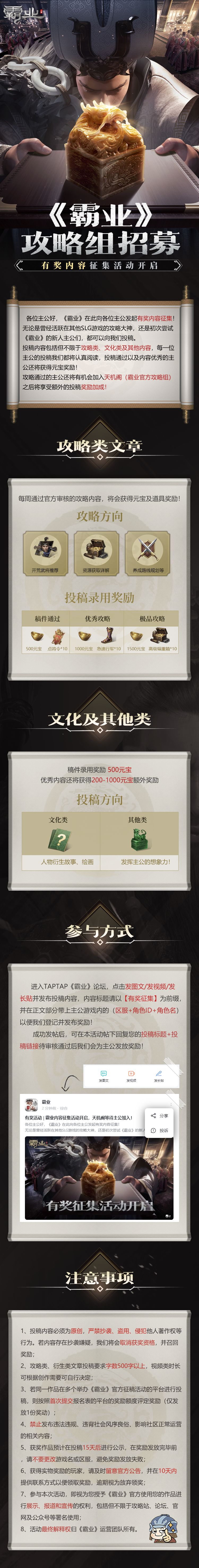 各位主公好,《霸业》在此向各位主公发起有奖内容征集!