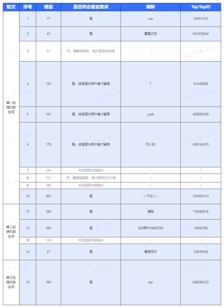 经过三轮随机数抽选,排除重复留言内容及缺失楼层后,恭喜以下达成留言要求的10位特工获得周边【纱夜徽章】!请获奖特工添加官方QQ:251704154,提供相应信息领奖,截止时间7月5日,逾期无效哟~