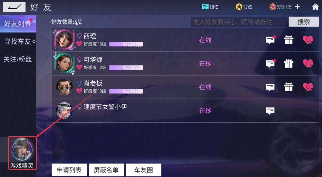 与以往的精灵入口相同,车手们只需点击游戏主界面右上角的好友图标,即可在好友界面左下角找到wiki入口,用熟悉的方式获取车辆图鉴全新的体验。