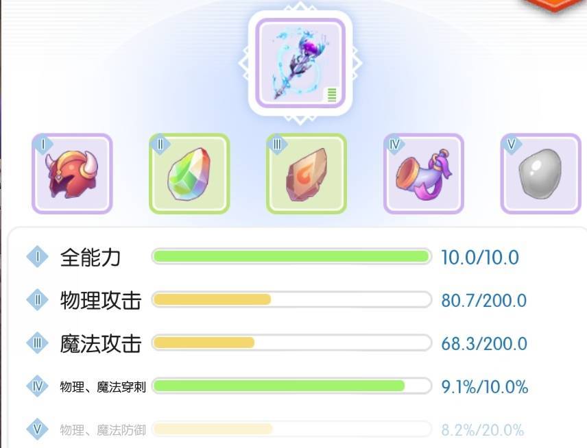 综合的属性优先级大致为:技伤≈穿刺>元素伤>物伤≈mvp增伤>hp%≈破防>攻击%(仅供参考,请以实际个人属性为准,例如优先达到英灵标准:200破防、80穿刺、50技伤)