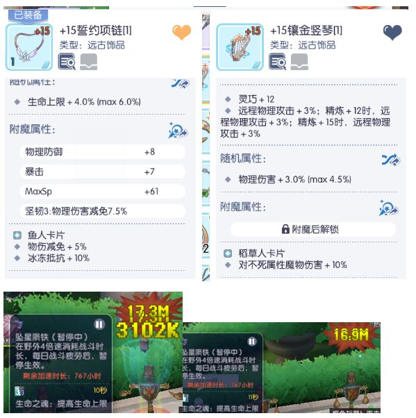 生命之魂总共可以带来50%的附带生命加成,对于物猫来说,堆生命是优于堆攻击的(测试过程见第四部分),很好养活,方便低存追输出的职业之一