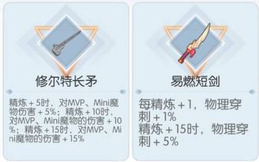 高配:15修矛(最高30mvp加伤,pve最优)≈15易燃(最高20物穿,兼顾pvp)