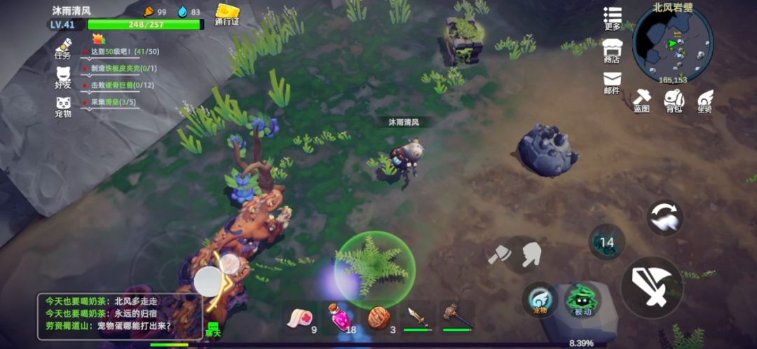 这个时候萌新先把弓箭的翻滚,群伤,被动点出来,技能里就是221。(可以带一只狐狸有加基础速度的)通过翻滚和被动的速度加成在石坑拉全图然后快速升级。