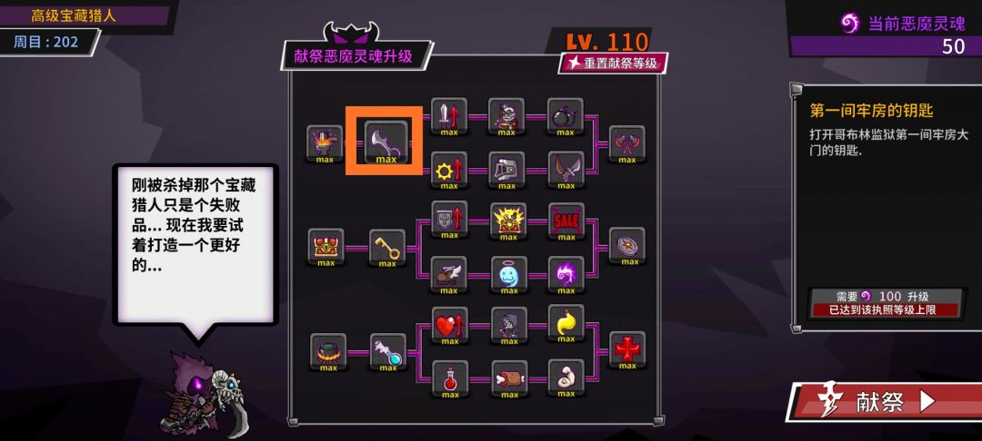 三、那个“重置献祭等级”作用是清空当前等级并返还相应灵魂,没什么用,一般用来给满级玩家进行0级挑战。