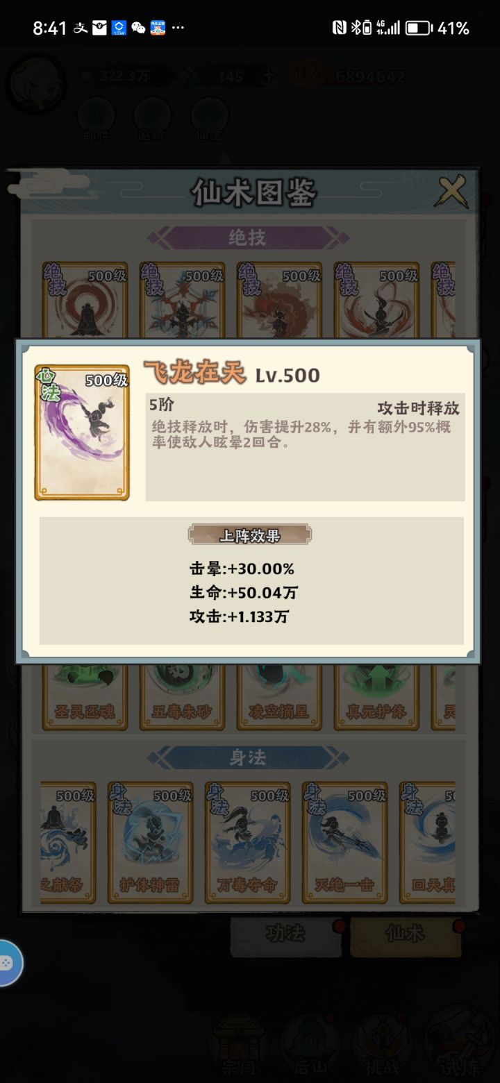然后是一个我没拿到的仙术,那就是飞龙,这个仙术也是弥补你晕不住的情况。