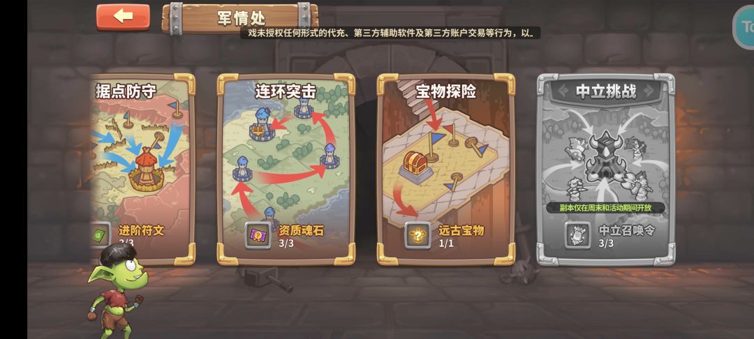 这个副本只能使用中立军团,挑战失败不扣次数,大家可以尽量尝试打难的,只有打中立5或以上,才有紫山魂石包。