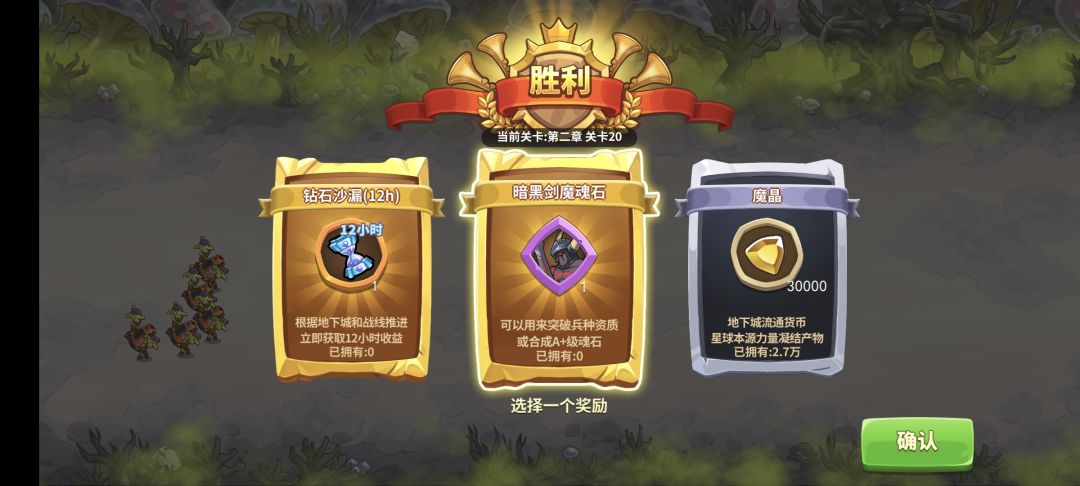 重点注意:每逢通关20、30大关卡,都能刷出稀有紫色魂石奖励,如果三选一魂石不理想,直接把游戏退出后台,重新进入游戏再打一遍,就能重刷奖励。