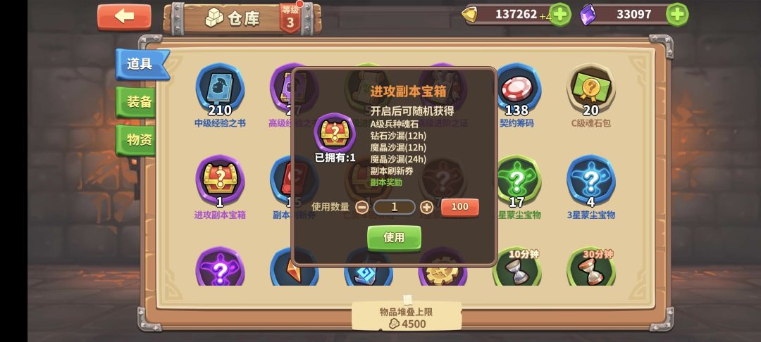 奖励优先级:魂石>宝箱>24小时魔晶沙漏>12小时钻石沙漏>12小时魔晶沙漏>副本刷新券