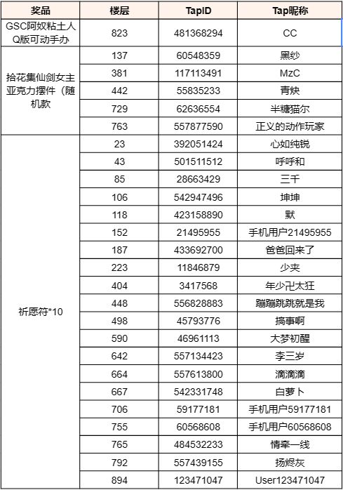 截止到6月22日23:59,本次福利活动回帖的有效楼层截止至925楼,起始楼层为2楼,中奖名单如下