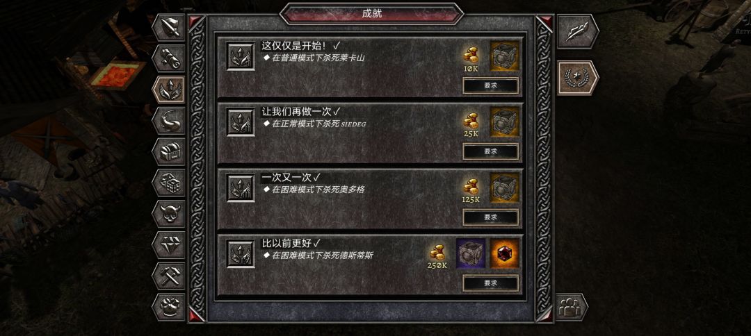 1、2是升等级到200级就行了;3、4是6个职业升级到150级就行;5、6、7是在什么难度打大怪,打完就完成了;8是技能+点,+到指定数量就行;9是在什么难度开普通箱子,开到一定数量就完成。发2个贴,一个贴发不了10多个图