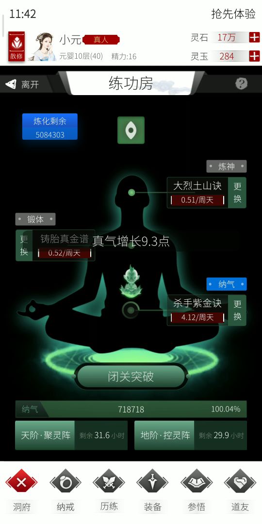 4.经脉中的纳气效率加成(没测,点点不吃亏)