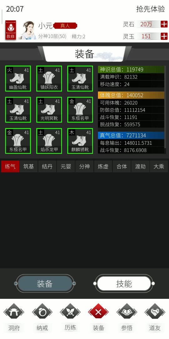 3.经脉中的五行伤害加成(加成法器扛伤)和五行防御加成(直接加成到防御值)太低。