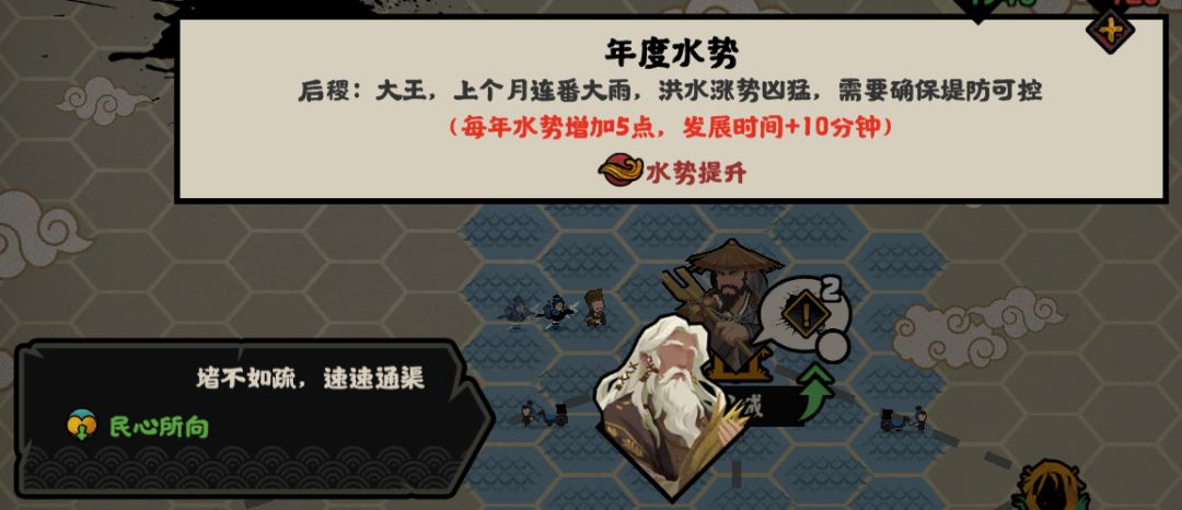 最后,记得合理利用道具,尤其是开局的时候,用物资车或者烛龙之前获取资源,避免升级太多民生科技导致水势太高。