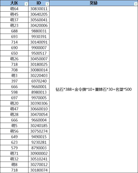(钻石*388+金令牌*10+重铸石*30+名望*500)*30份。