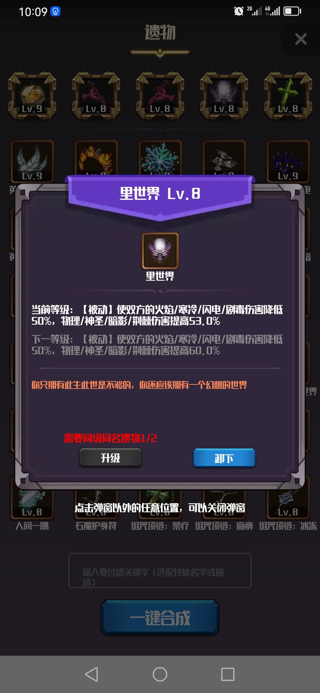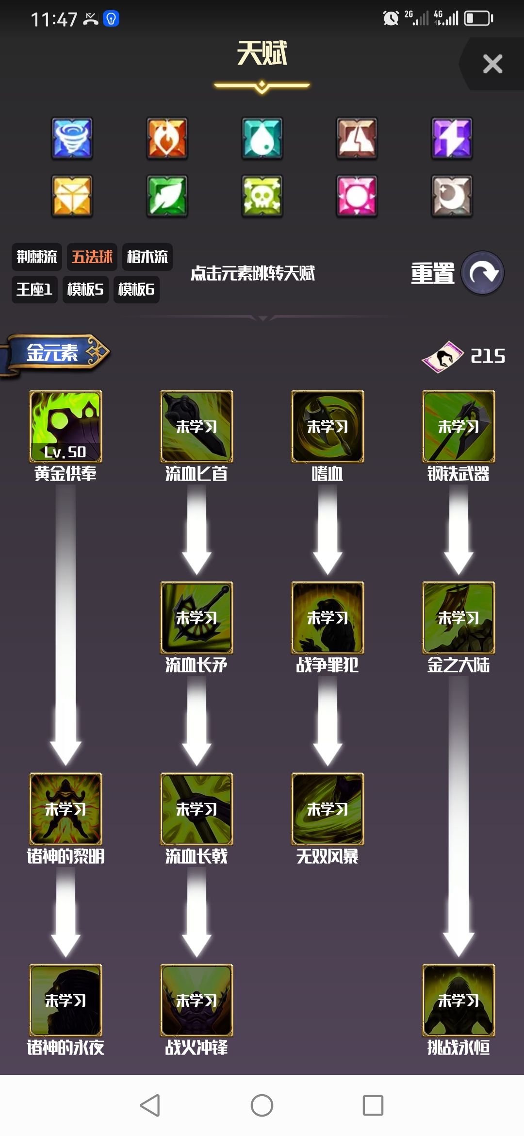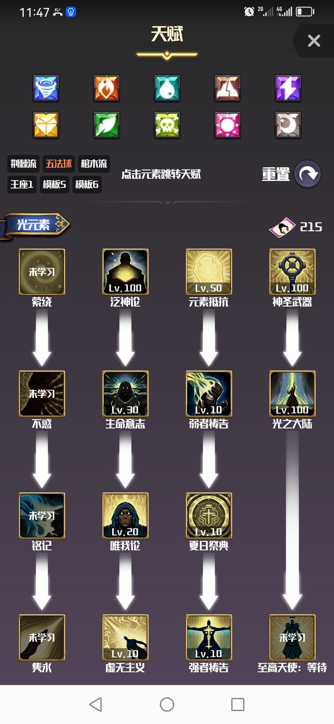 如果还有富裕的天赋点,可以点点保命天赋和加基础属性的天赋。保命天赋例如:腐殖重生(木),虚无主义(光),群山(土)。