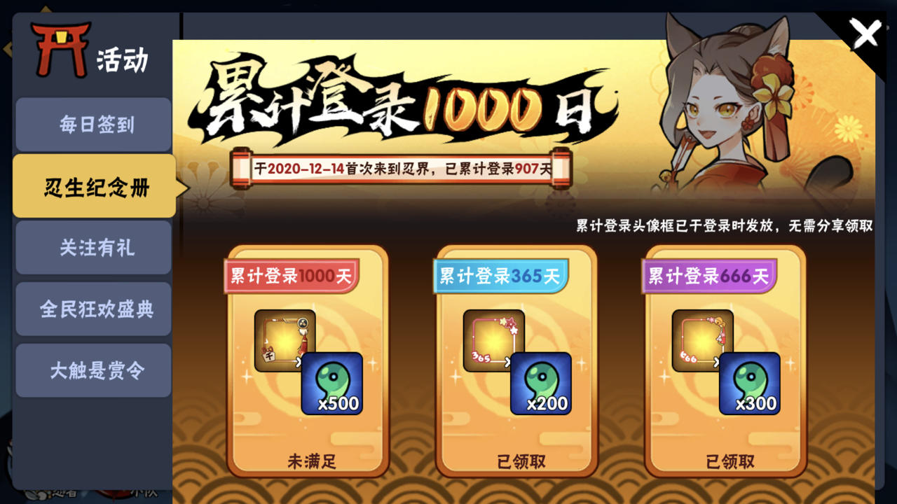 到此为止了,我的吞金兽就要出生啦,从此工作之余就是家庭啦,各位,在下先走一步,账号已出,祝大家欧气爆棚十连三金,忍无双和辞酒是我呆过最好的家族,多的话不再说啦,忍界,寻仇告辞!再也不见!