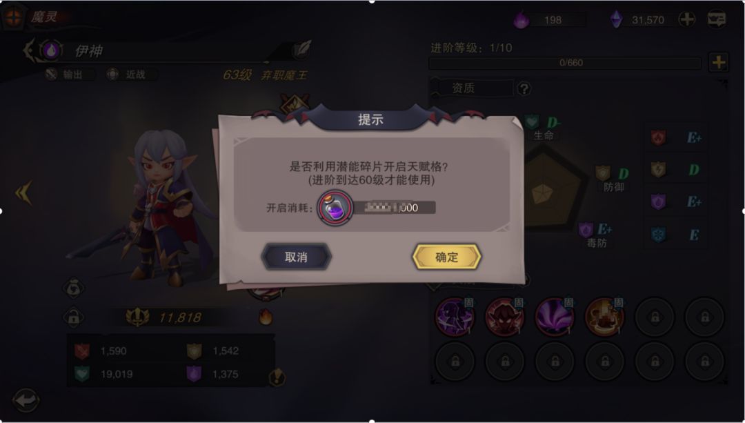 魔灵可以在满进阶的前提下,利用自身积累的潜能碎片来继续开启因进阶没有开启的天赋格。