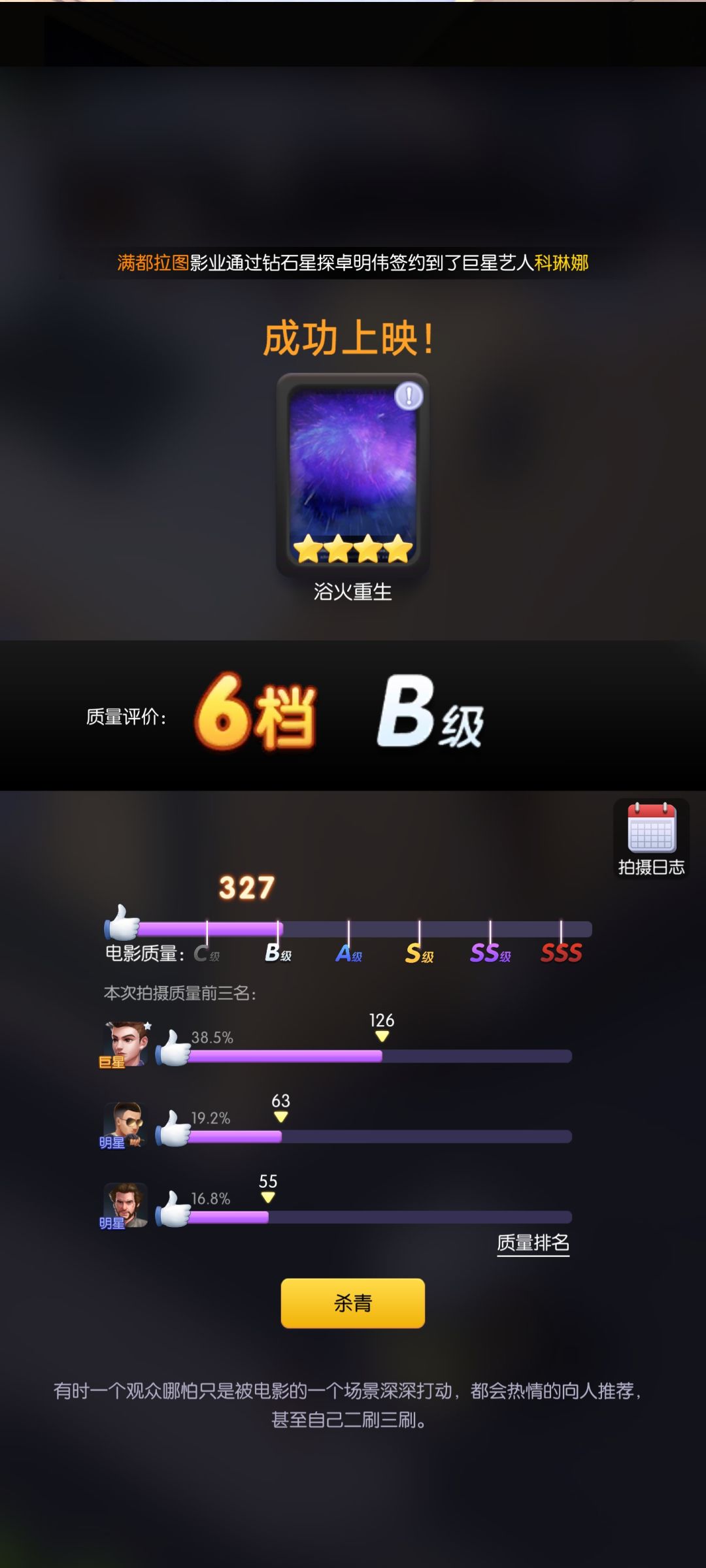 肯定选择战争,然后养开局30出的雷哥张哥和三级的姜哥三个,一直连他们,多余的而且别人攻略没有的明星全丢去给雷哥和张哥当助力去,然后一直养,钻石留着,抽到第一个金就不动了,留着晚上弄科幻因为开6档必须要2个巨星,科技和战争最搭配,然后开始养个蓝雨,养40级就行了,因为资源只够三个60级,前面5档应该不会怎么卡,蓝雨技能就是复制技能就看运气多试试,然后到了4-5档用金币升级宣传,4档的s宣传拉满,5档的a以上也宣传拉满,宣传有次数限制一定要拉满的是4档s+或者5档a+不然第一天早上开始玩晚上到不了8级,像我一小时500w差不多晚上就8级了,不过7级按我下面的阵容完全可以开启6档的战争,晚上22点开始抽科技,运气好完全可能再带着过一个三星科技剧本,当然如果你和我一样运气好抽到四星本,就可以直接开6档了,这就是第一天攻略等我第二天玩完了再写第二天攻略,一定一定只养3个,张哥技能全点亮后主升第三个!!!很重要
