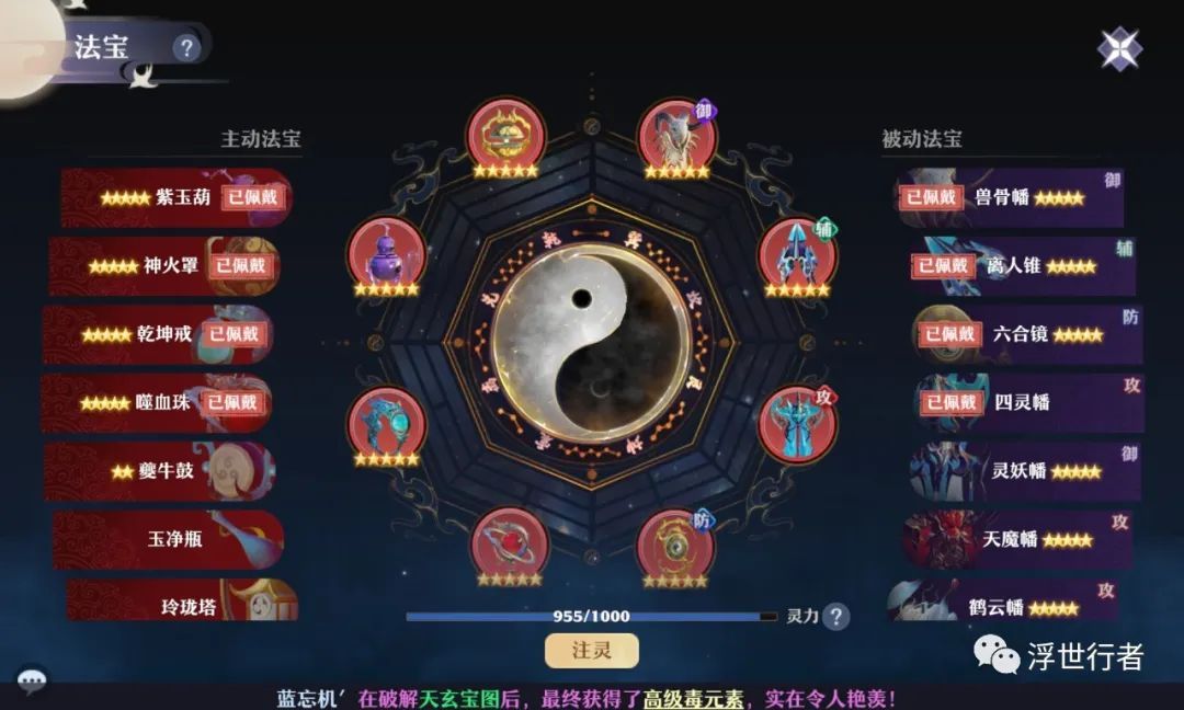 兽骨幡/灵妖幡+四灵幡+六合镜/青灵镜+离人锥。其余法宝有条件的可以洗个不佩戴也能生效的血炼属性,六合镜和青灵镜建议都培养出来,日常和PVP使用六合镜,部分难度PVE(比如兽四或者焚天剑灵)可以换成青灵镜。
