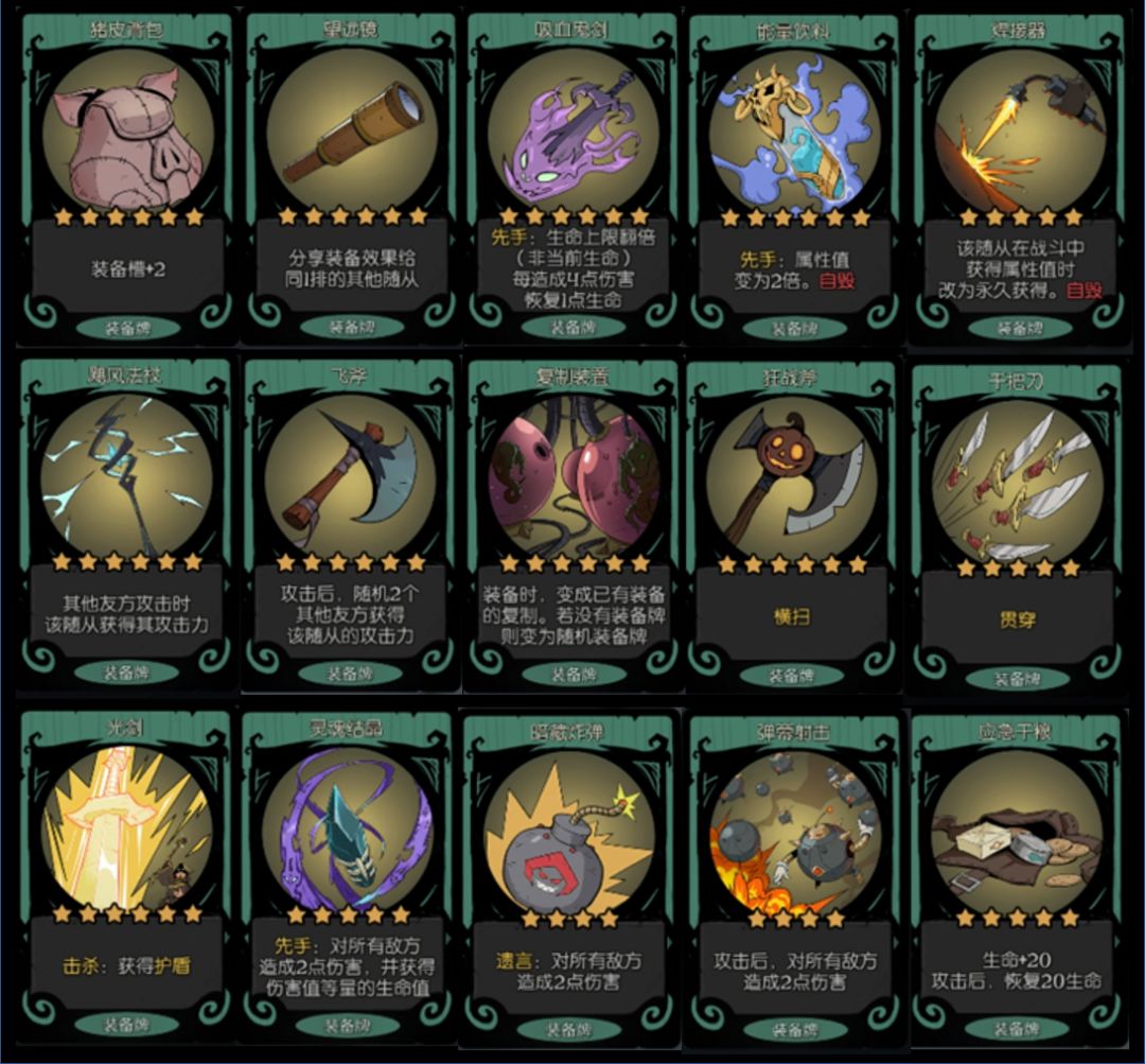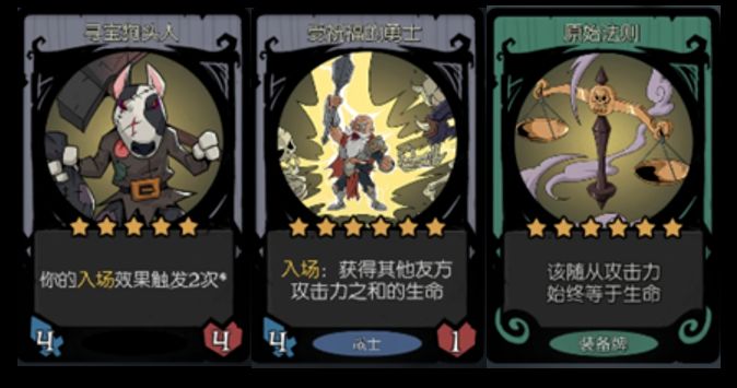 【刽子手】3本,入场:其他友方获得+2+1(金+4+2),3本遇到可以买,入场怪都是功能牌,用完以后,不影响推图的情况下尽快卖掉,要不然浪费属性加成。