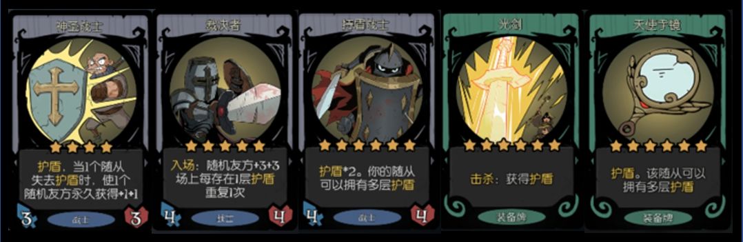 【天使手镜】6本装备,护盾,该随从可以拥有多层护盾,和持盾战士二选一,必须有一个,优先持盾战士
