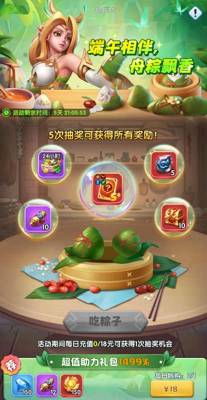 8.粽享好礼:端午放“棕”!活动期间,每日累计充值18元可参与抽奖1次,抽到的奖励不放回奖池,五次抽奖可获得全部奖励。