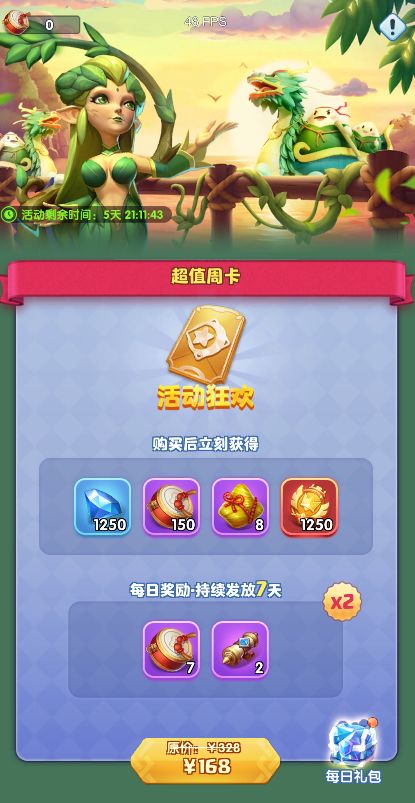 5.端午周卡:活动期间,开放端午周卡购买,可获得更多道具资源。