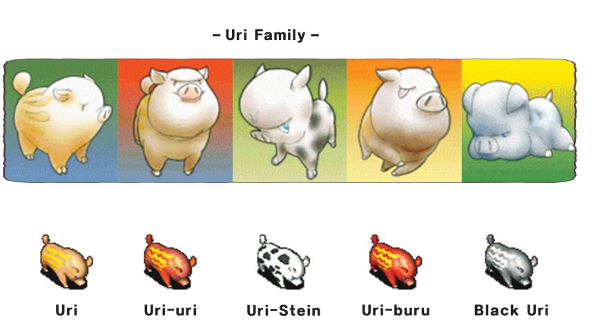 于是,我们做的第一步,就是提炼老石器的美术特征。我们用了一些简单的形容词来总结是:怀旧、复古、日式卡通、自然、清新、原始……有了直观的感受形容词后,我们又提炼了一些IP视觉记忆点,例如:宠物(石器的灵魂)、角色(最直观,可一眼认出)、音乐(简单不复杂,氛围感和画面感)、地图(标志性建筑)等……