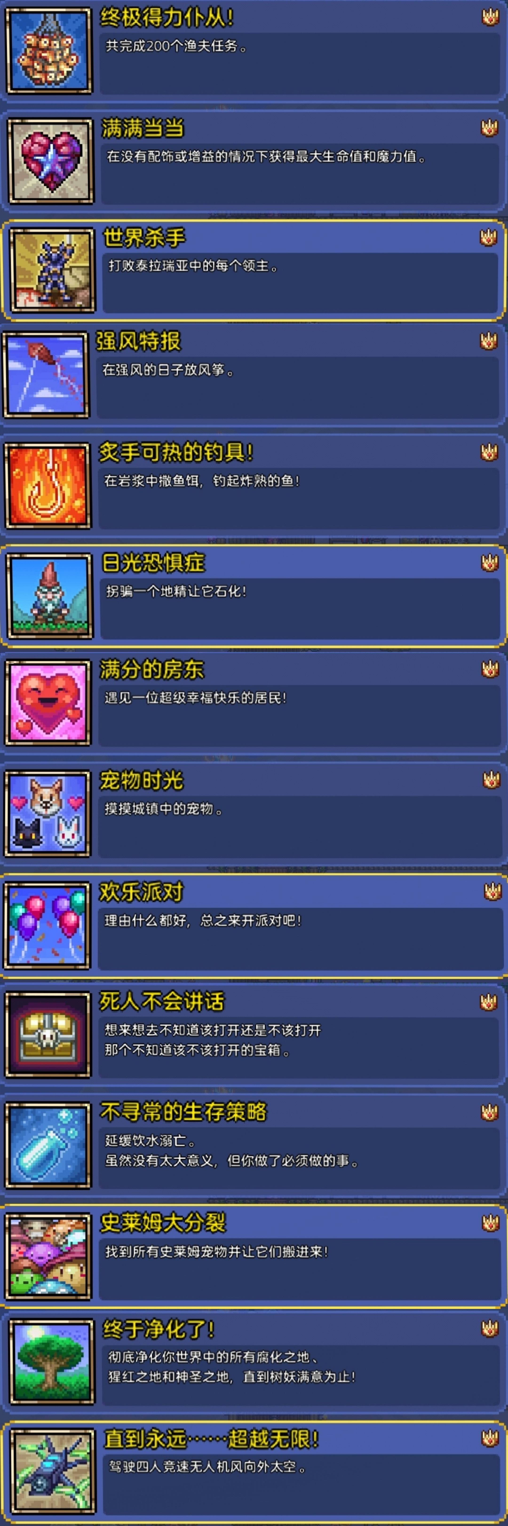《泰拉瑞亚》全成就达成!