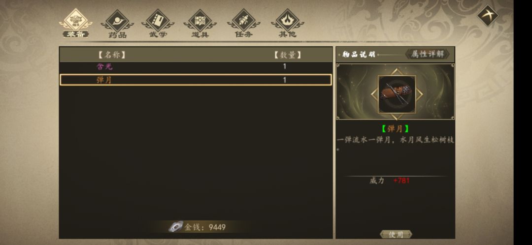1. 弹月(容城茶馆,吴不知,支线任务机关木匣,有悟性要求,需要70悟性)