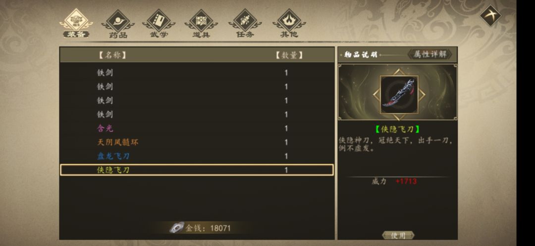7.隐侠飞刀(蓉城文殊院中间房子 进门需内力100)