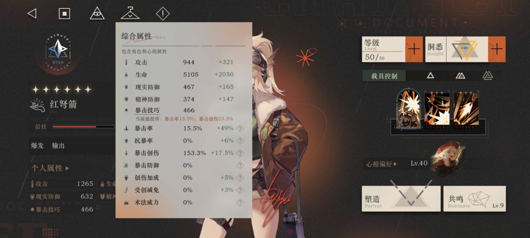 暴击技巧:提升角色基础暴击率与暴击创伤的基本属性。