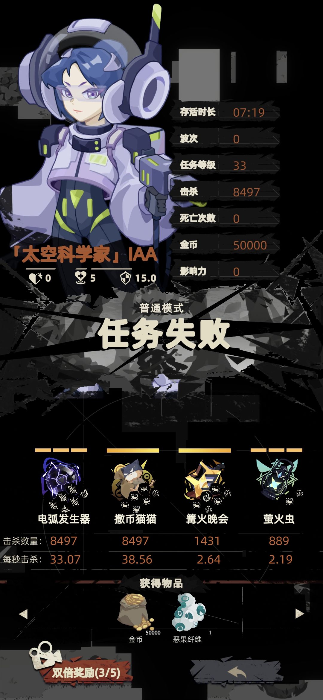 人物角色:IAA,武器:电弧发生器。配件:散射(优先),双攻击