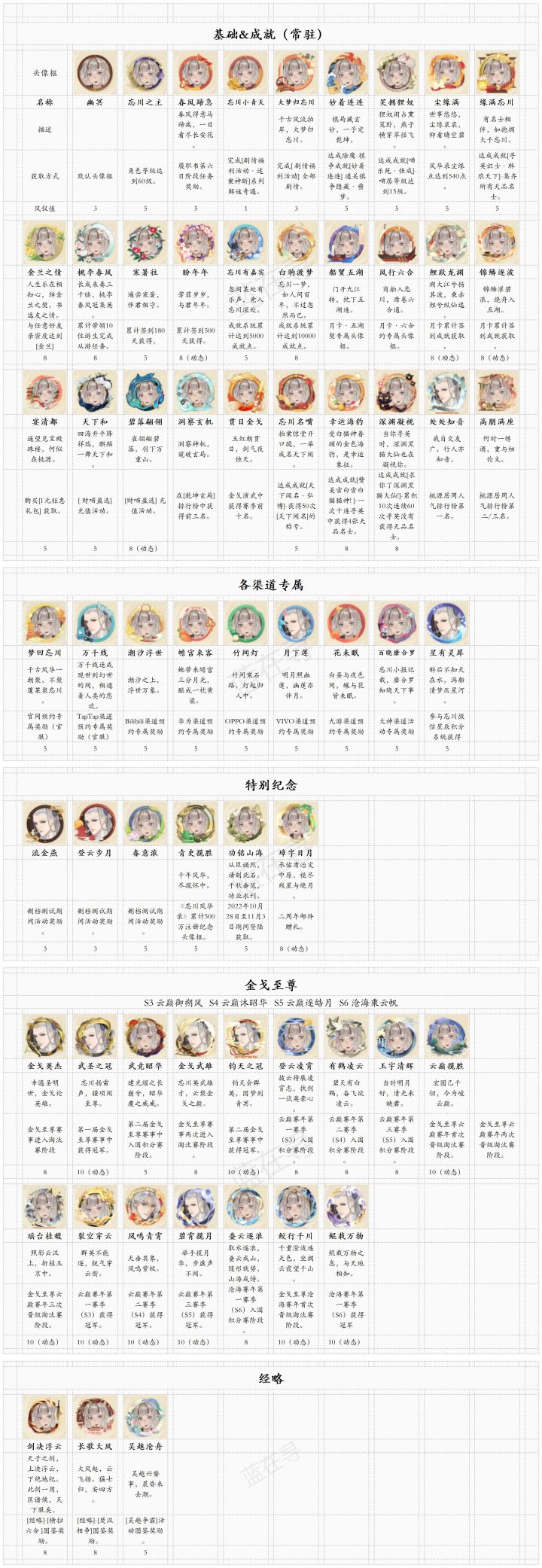 【风仪收集图鉴】自制表格版
