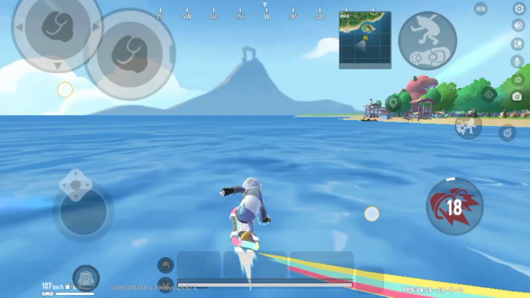 因此,我们在陆地上被别人追击时,我们可以选择直接逃去水面上,再来一个加速,敌人一会儿就看不见你了