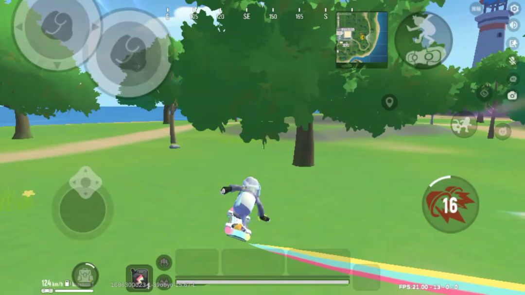 在上面这个视频中我们可以看到,未加速时滑板的速度大约是80km/h,而加速时,滑板的速度大约是120km/h,加速技能冷却时间为17秒,持续时间是7秒,注意,滑板的跳跃键跟平常的跳跃键的位置是一样的