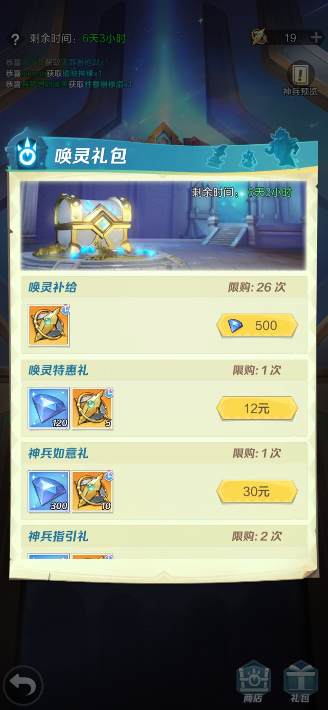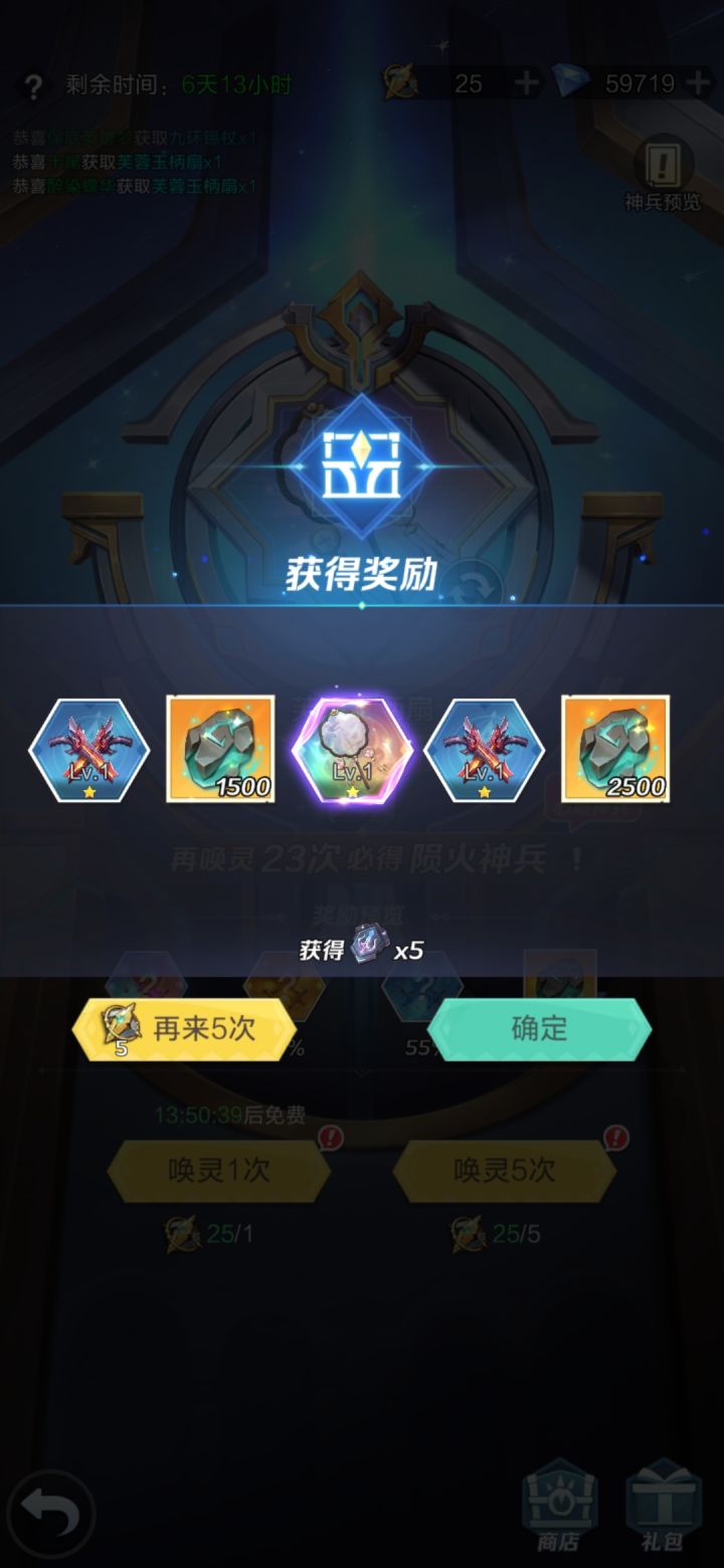 8抽就出了,早知道不选神兵了,最近运气爆炸好,30抽两个盛世,50抽两个神兵