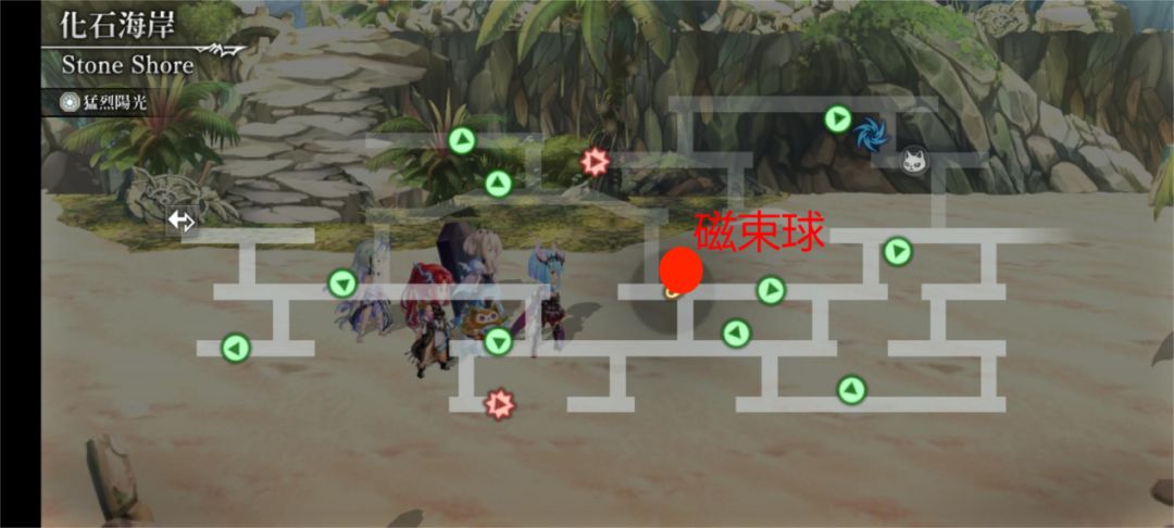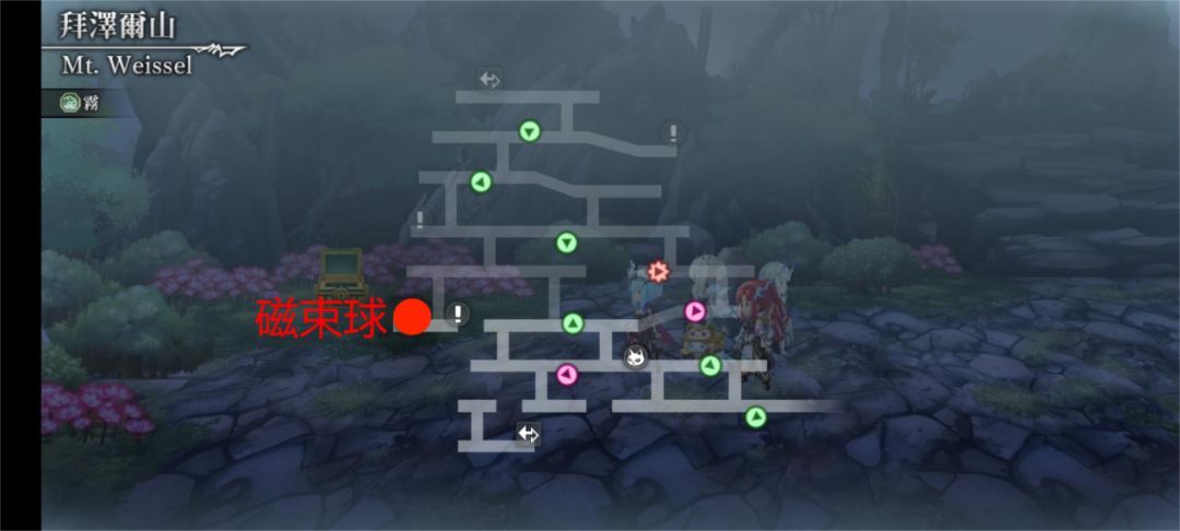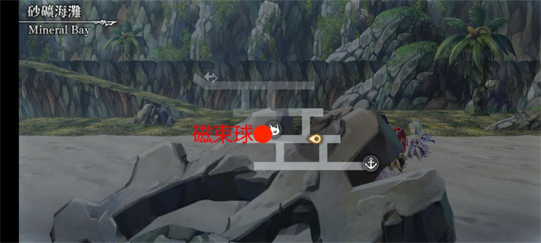 到了上图所示地点后,领队角色会与地面一处同时出现红光,并伴随声音出现,点击发出红光的地面并挖掘,获得磁束球*1,下面同理